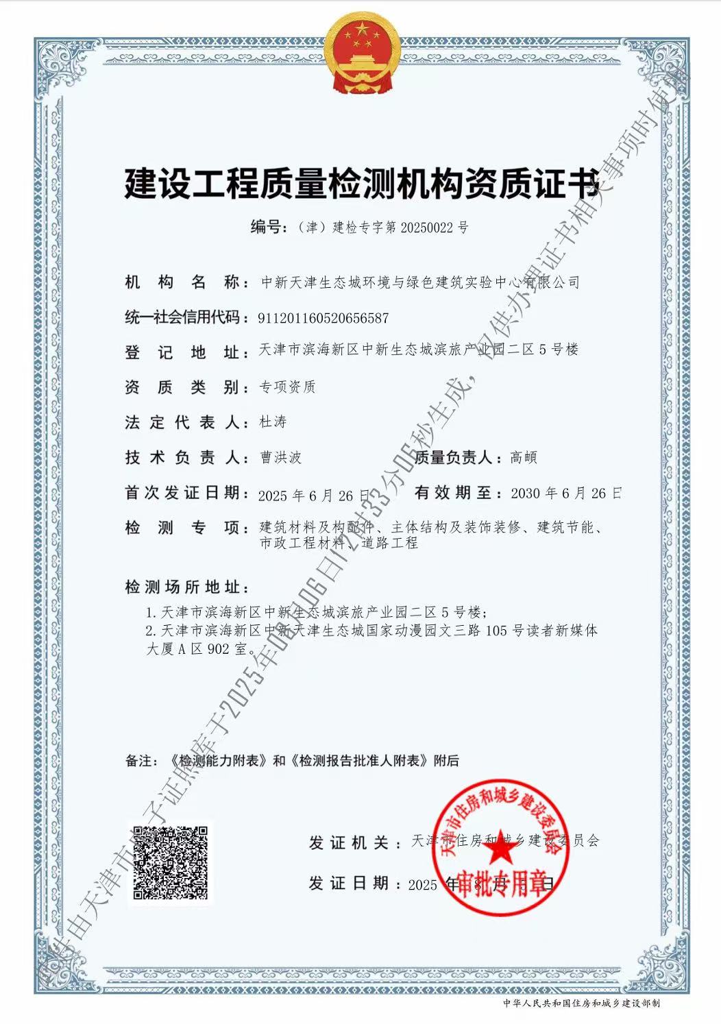 公司發(fā)展至今,技術能力不斷拓展和提升。現(xiàn)已具備檢驗檢測機構資質(zhì)(簡稱CMA)、天津市建設工程質(zhì)量檢測機構資質(zhì)、中國合格評定國家認可委員會實驗室認可資質(zhì)(簡稱CNAS)等資質(zhì)。同時,公司已被認定為高新技術企業(yè)、天津市專精特新中小企業(yè)、濱海新區(qū)首家近零能耗建筑第三方測評機構。公司主要從事建筑材料及構配件、主體結(jié)構及裝飾裝修、建筑節(jié)能、道路工程等檢驗檢測服務,以及綠色建筑節(jié)能評估、近零能耗、房屋質(zhì)量安全鑒定等咨詢服務業(yè)務。公司在冊員工為60人,其中高級職稱30名,中級職稱20名,初級職稱10名。